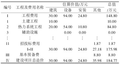 表1A火力发电厂烟气余热利用建设项目估算(局部)