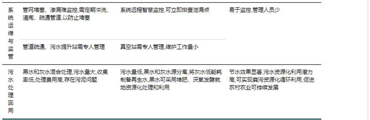 与传统重力排水系统相比,真空排水系统具有节水、隔臭、无渗漏、收集率高、密闭性好等优点,排水管道具有管径小、埋深浅、能爬坡、防冻防堵、管道铺设灵活,不需要设置检查井,受外部环境限制程度低,不影响周围环境,施工方便快捷、周期短、土建费用低等特点[3,9-10](表1)。