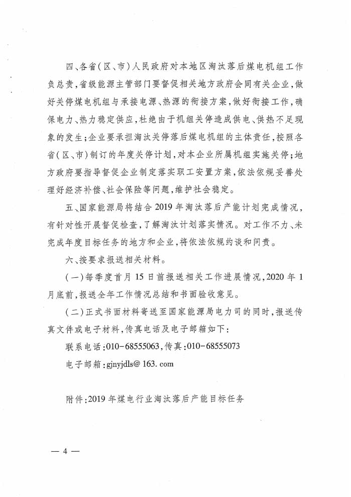 国家能源局关于下达2019年煤电行业淘汰落后产能目标任务的通知